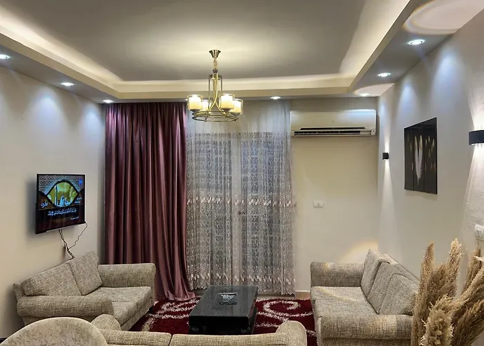 Featuring views of the garden, the 160 m² شقه مفروشه ارضي بحديقه خاصه Apartment In Cairo is situated in the Nasr City district, 3.5 km from Kidzania. At this 1-bedroom apartment, Wi-Fi and free private parking are also provided.
